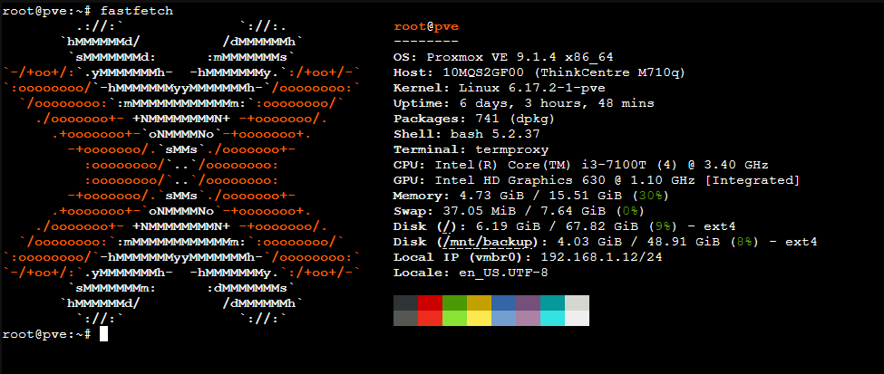 - OS : Debian 13 (Trixie) sur VM Proxmox